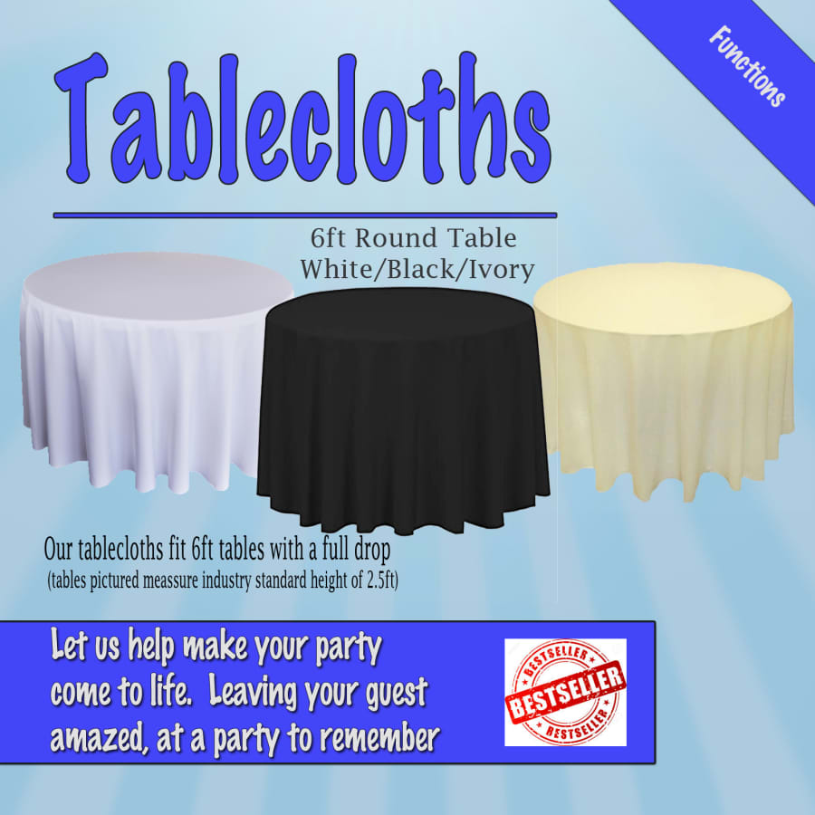 VW Hire Table Linen Round White / Black / Ivory